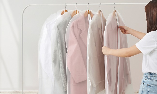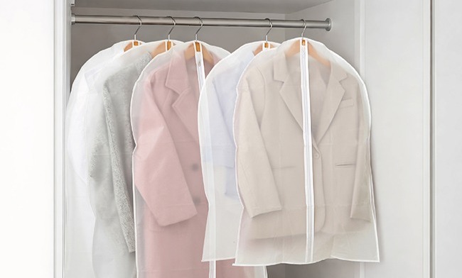 ● 長型拉鍊式衣物防塵套,約寬60×長90cm,收納:襯衫/短外套/裙子。