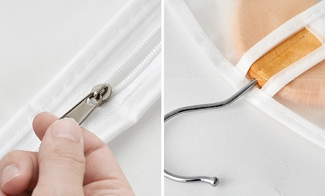 ● 特長型拉鍊式衣物防塵套,約寬60×長130cm,收納:大衣/洋裝/長褲。